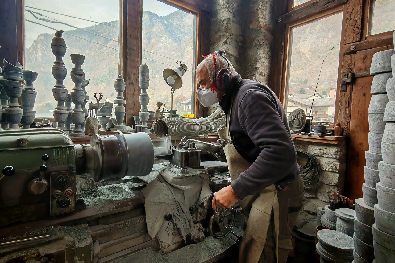 Nelle botteghe artigiane questa materia viene ancora lavorata a mano, trasformandosi in utensili e manufatti che rievocano le storiche tradizioni del passato raccontando un sapere antico legato alla vita di montagna.
